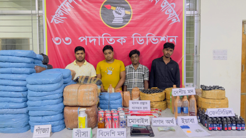 এ সময় ১২৫ কেজি গাঁজা, ৪২৪ বোতল ফেনসিডিল, সাত লিটার চোলাই মদ, মদ তৈরির কাঁচামাল, বিয়ার, মদ, ইয়াবা ও নগদ ১৭ হাজার টাকাসহ চার মাদক কারবারিকে আটক করা হয়। এ সময় একজন পালিয়ে যায়।