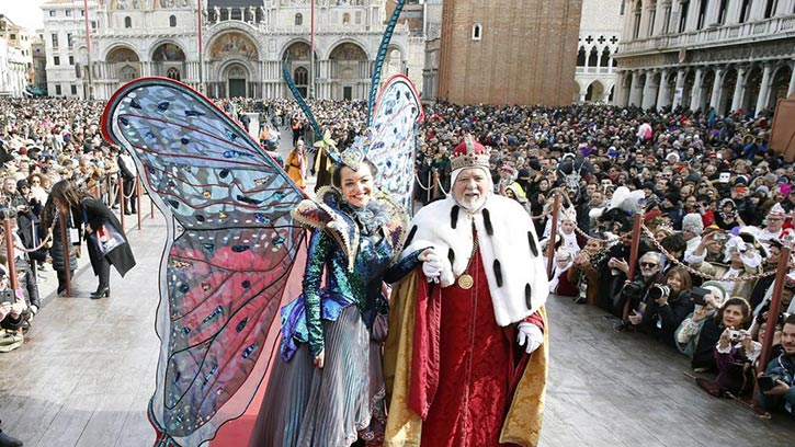 কার্নিভালকে ঘিরে ভেনিসে জমেছিল বাহারি রঙের নৌকার সমাহার, কনসার্ট, পিয়াচ্ছা সান মার্কো বা সান মার্কো স্কয়ার টাওয়ারের চূড়া থেকে তার বেয়ে নিচে নেমে আসা এবং বিশ্ববিখ্যাত ফ্যাশন ডিজাইনারদের প্যানেলে সবচেয়ে সুন্দর মুখোশ নির্বাচন করা।