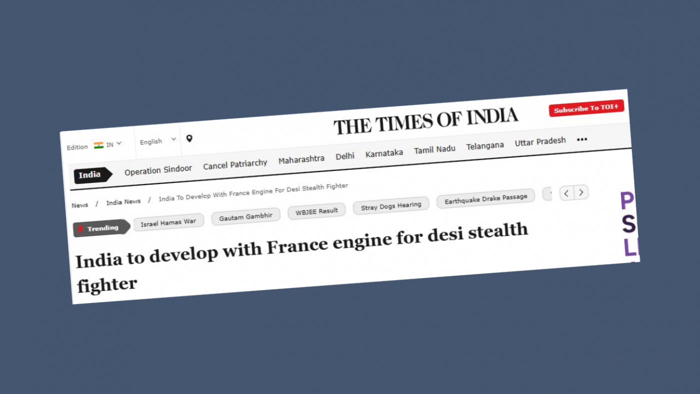 অবশেষে পঞ্চম প্রজন্মের নিজস্ব স্টেলথ যুদ্ধবিমানের জন্য শক্তিশালী নতুন জেট ইঞ্জিন তৈরিতে ফ্রান্সের সঙ্গে যৌথ উদ্যোগ নিতে যাচ্ছে ভারত। এর মাধ্যমে দুই দেশের মধ্যে কৌশলগত অংশীদারত্ব আরও শক্তিশালী হবে বলে জানিয়েছে ভারতের প্রতিরক্ষা মন্ত্রণালয়। খবর টাইমস অব ইন্ডিয়ার।